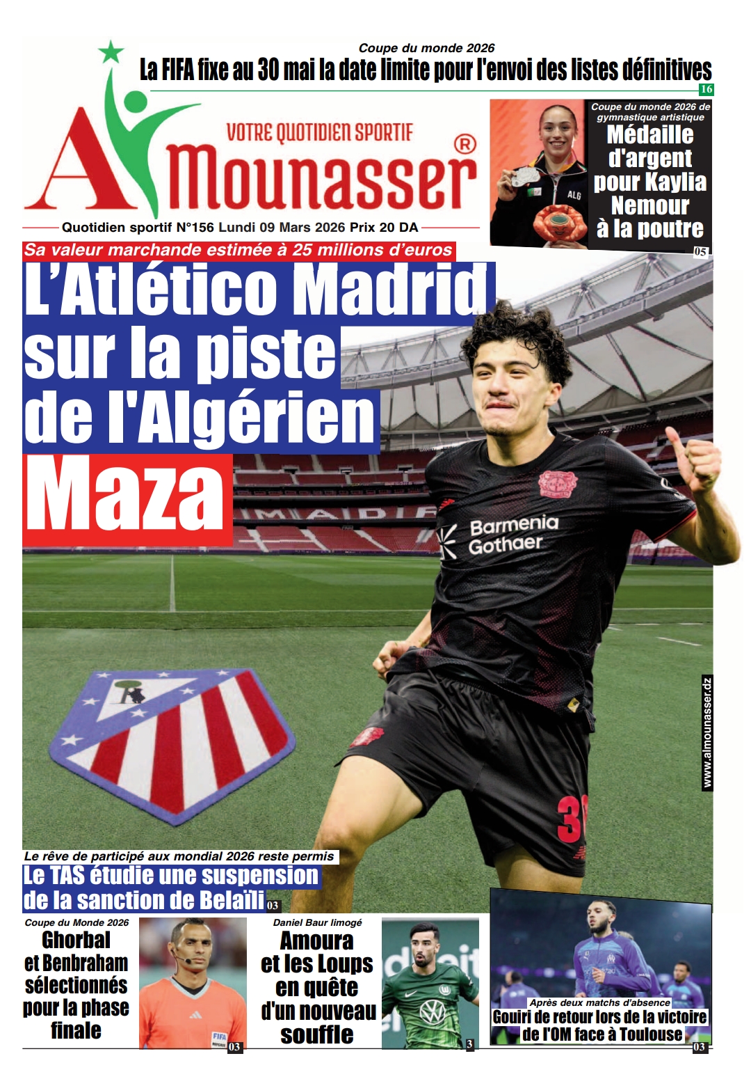09 Mars 2026 Le prodige algérien dans le viseur de Diego Simeone pour renforcer l'attaque des Colchoneros Elyas 69